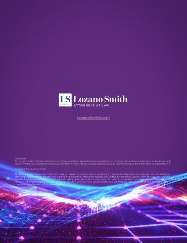 work prepared therefrom, nor shall any sub-license be granted, without the express prior written permission of Lozano Smith through its Managing