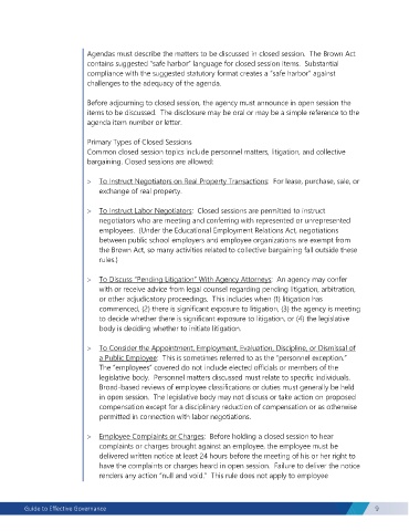 Agendas must describe the matters to be discussed in closed session. The Brown Act