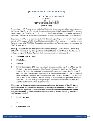 Agenda. To ensure fair and equal treatment of all who appear before the City Council,