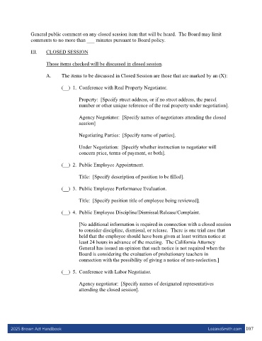 A. The items to be discussed in Closed Session are those that are marked by an (X):
