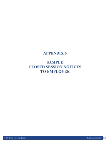 APPENDIX 6 SAMPLE CLOSED SESSION NOTICES TO EMPLOYEE 2025 Brown Act Handbook LozanoSmith.com 135