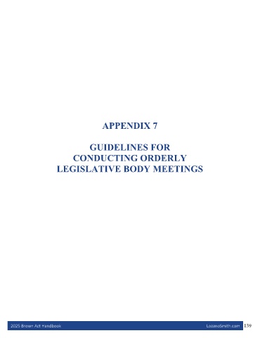 APPENDIX 7 GUIDELINES FOR CONDUCTING ORDERLY LEGISLATIVE BODY MEETINGS 2025 Brown Act Handbook LozanoSmith.com 139