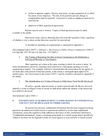 another party. See Government Code section 54957.1 and the checklist contained in Appendix 5