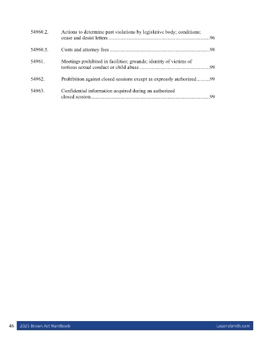 54962. Prohibition against closed sessions except as expressly authorized ..........99