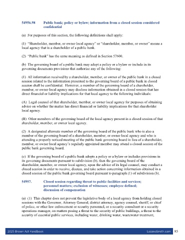 54956.98 Public bank; policy or bylaw; information from a closed session considered