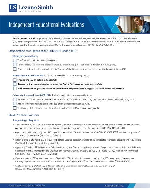 (i.e., paid for by a school district). 34 C.F.R. § 300.502(b)(1). An IEE is an assessment conducted by a qualified examiner not